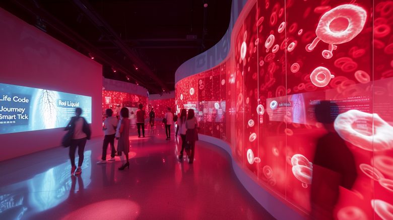 展示方式與內(nèi)容: 科普廳內(nèi)設(shè)有多媒體設(shè)備“生命密碼”,通過(guò)大型LED屏幕展示血液的組成、功能以及獻(xiàn)血的科學(xué)過(guò)程。參觀者可以通過(guò)互動(dòng)展板,了解血型、輸血兼容性等血液科學(xué)的基礎(chǔ)知識(shí)。