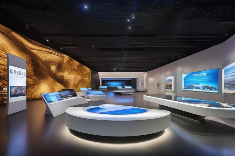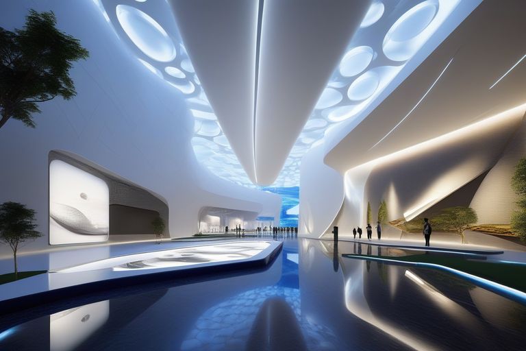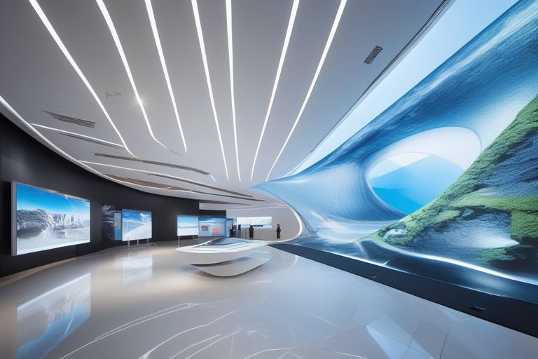 未來展望區(qū):該區(qū)域的建筑造型采用未來風格,以白色為主,配以光纖、LED、金屬等元素,營造出一種科技感和未來感的氛圍。展示方式主要有展板、圖片、視頻、雕塑、體驗空間等,展示內(nèi)容包括官河古道的現(xiàn)代功能和未來規(guī)劃,如商業(yè)街區(qū)、休閑空間、數(shù)字元宇宙、智慧城市等,展現(xiàn)黃巖的時尚之美和發(fā)展?jié)摿ΑT搮^(qū)域的設計意圖是讓參觀者了解官河古道的現(xiàn)代價值和發(fā)展方向,感受黃巖的時尚氣息和發(fā)展信心。展示方式的選擇是為了突出展示內(nèi)容的前沿性和創(chuàng)新性,讓參觀者有一種走在時代前沿的感受。多媒體設備的應用是為了增強展示內(nèi)容的視覺效果和互動性,讓參觀者有一種體驗感和趣味性。展示內(nèi)容的目的和作用是為了傳承和弘揚官河古道的現(xiàn)代文化,提升黃巖的時尚品質和發(fā)展競爭力。該區(qū)域包含以下幾個多媒體設備: